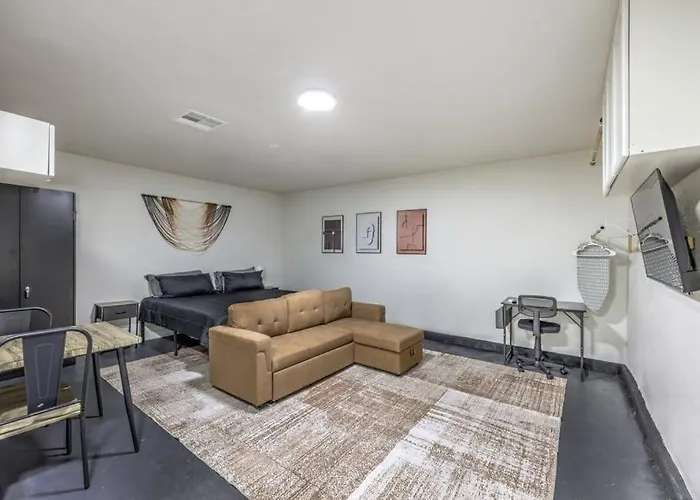 The 1-bedroom Elegant Private Studio Sleeps 4! 10Min To Strip! Las Vegas villa is located about 10 minutes by car from the SlotZilla Zip Line, giving access to various tourist spots nearby.